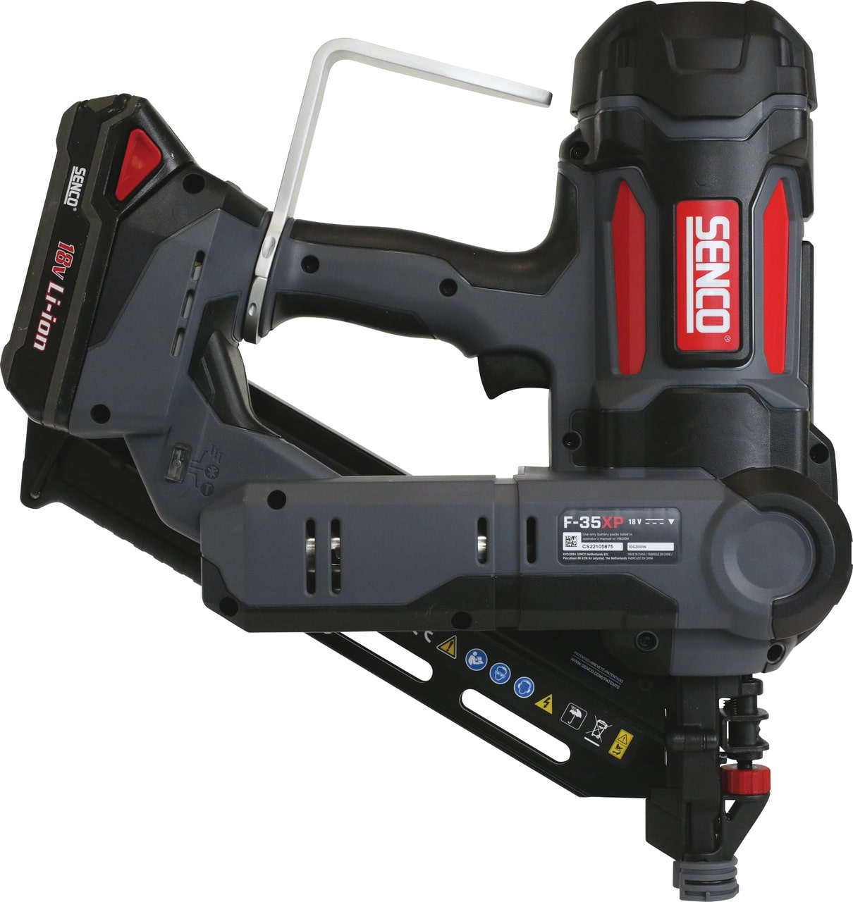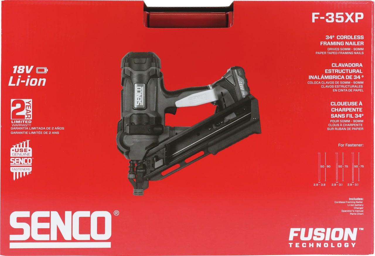Senco F-35XP su Fusion technologija, užtikrinančia tikrą pneumatinį pojūtį, greitį ir galią bei patogumą naudojant belaidį įrankį. F-35XP įkala karkaso vinis iki 90 mm x 3,8 mm į kiečiausius pagrindus be išlaidų ir rūpesčių dėl kuro elementų.