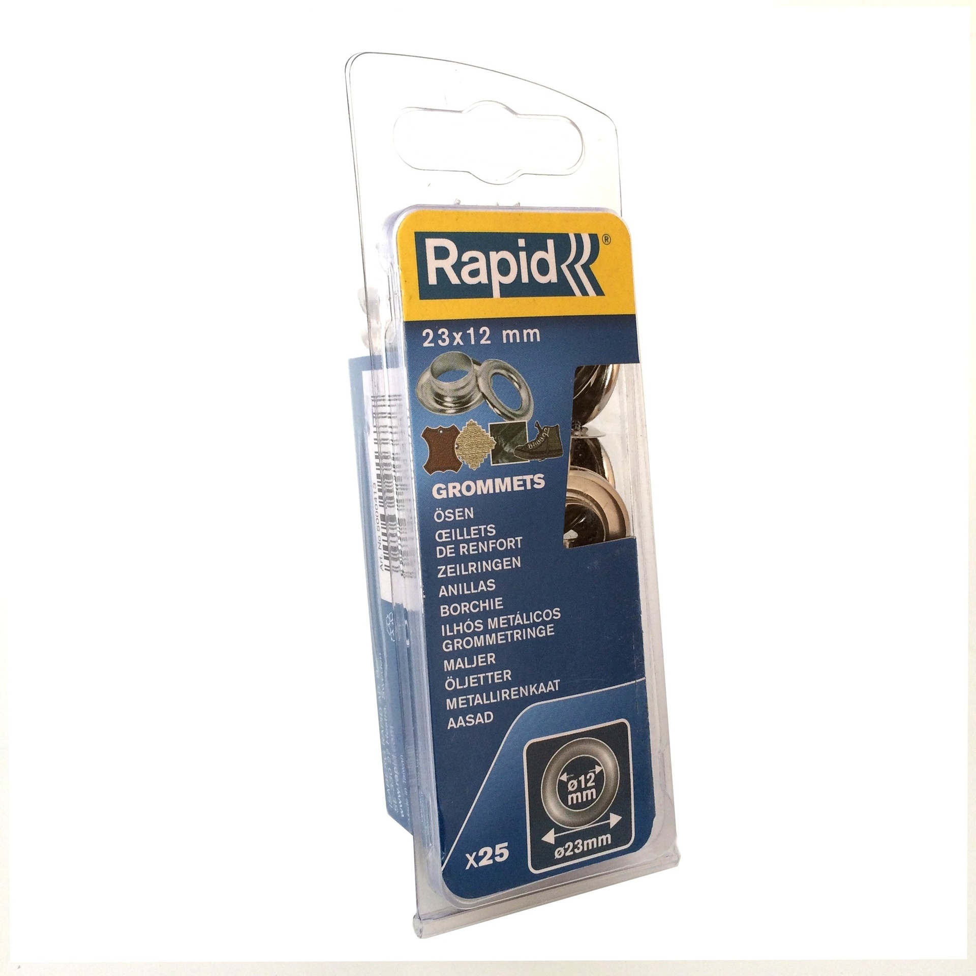 Žiedinė kniedė iš dviejų dalių, skirta audinyje padaryti kiaurymę, kurios