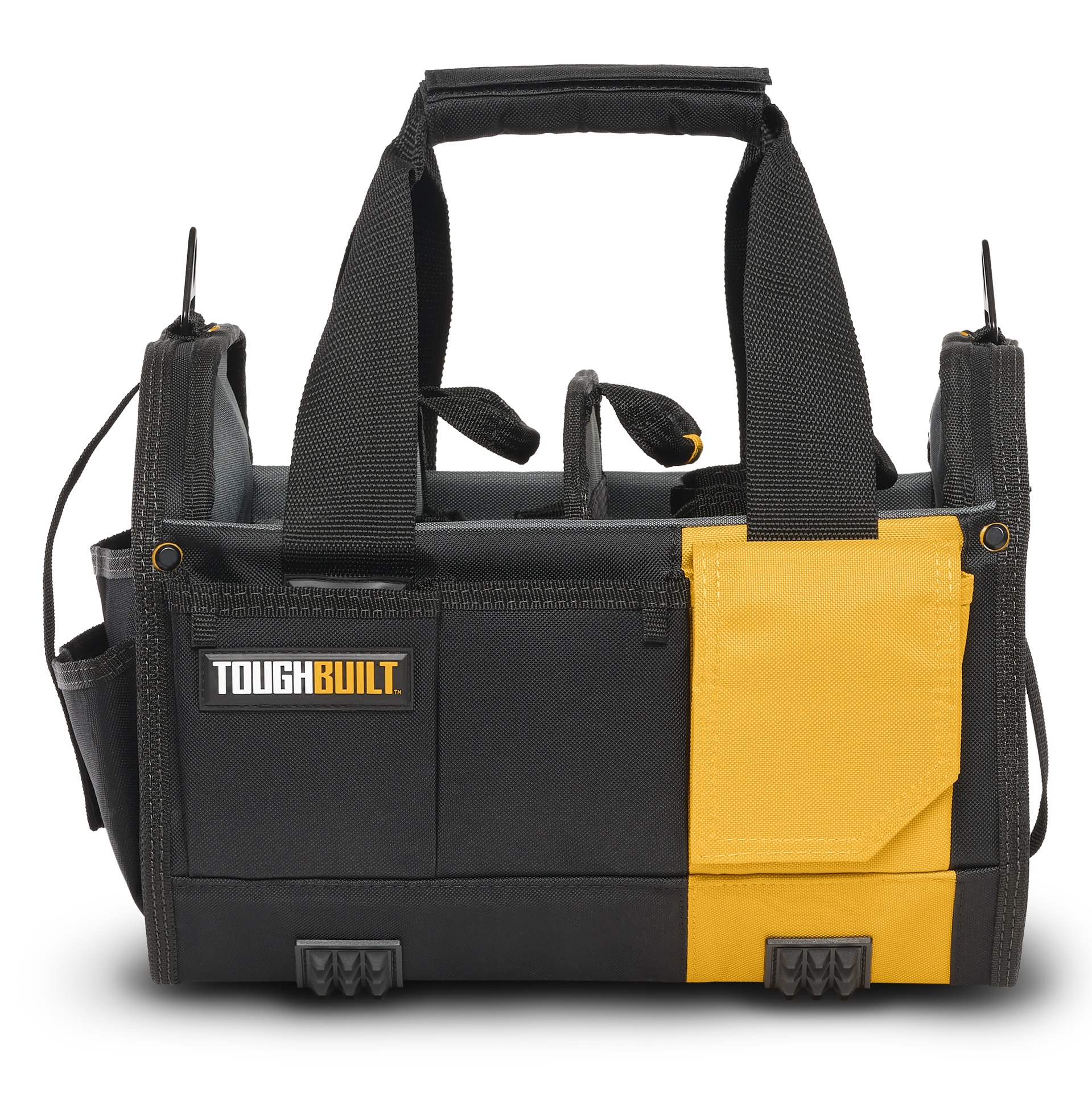 ToughBuilt® 30 cm modulinis krepšys. 4 tvirtus konfigūruojami skirtukai. 1 skirtukas turi atraminį stovą, kad galėtumėte patogiai pastatyti reikiamus įrankius šalia atliekamo darbo.