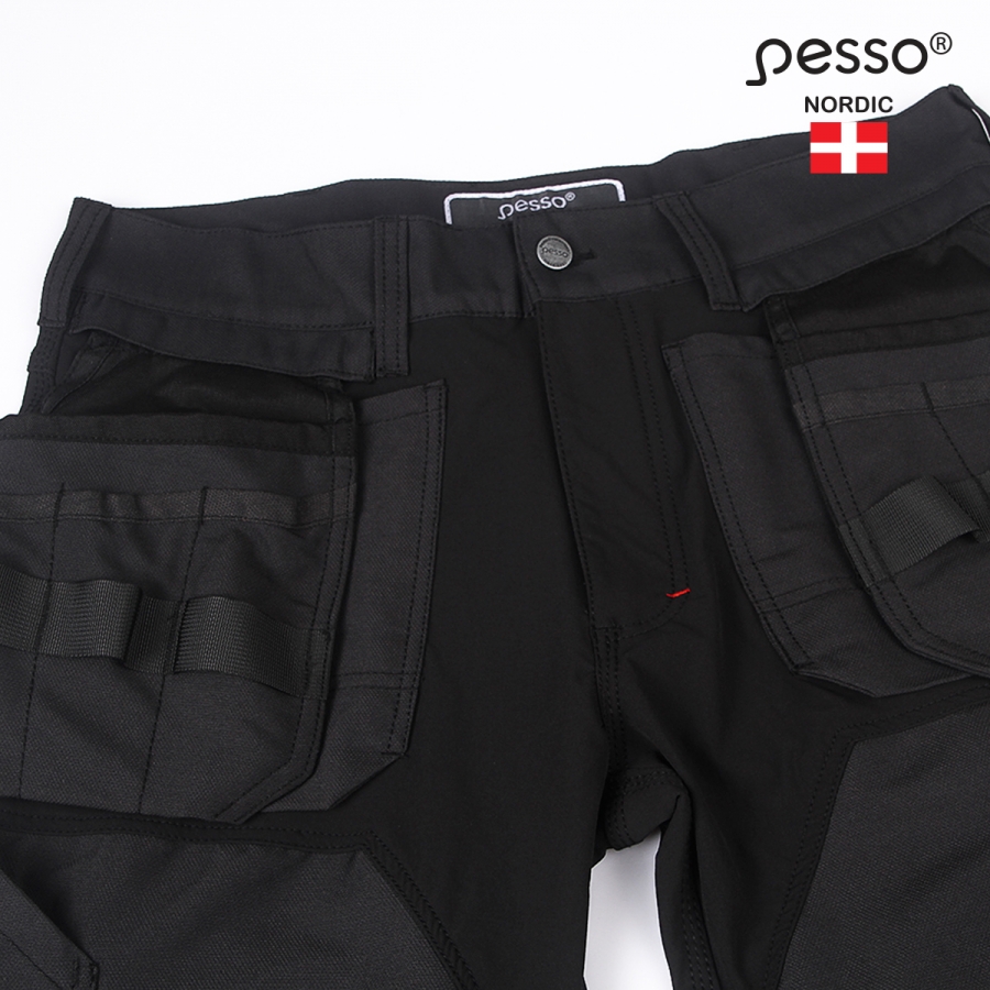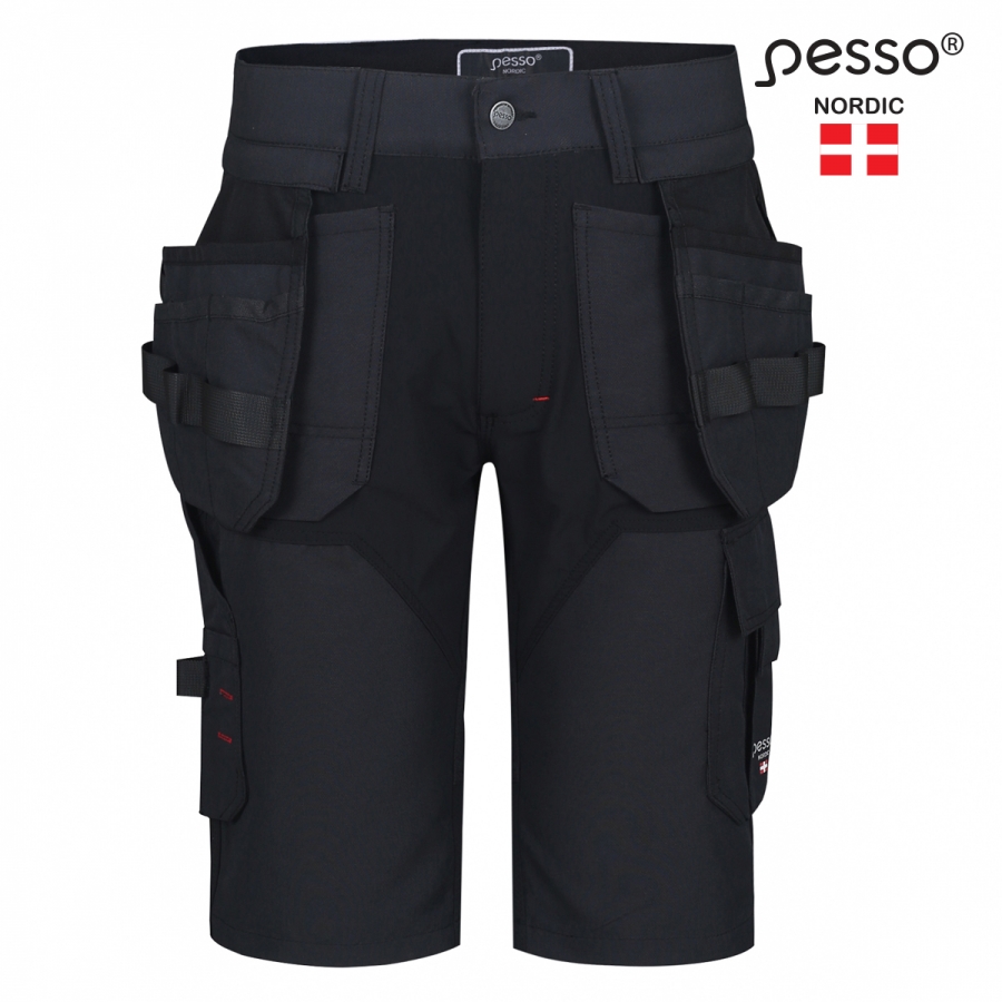 Šortai pasiūti iš ypač stipraus "half-panama" pynimo poliesterio/medvilnės audinio ilgaamžiškumui užtikrinti. Legendinio Cordura® audinio detalės bei 4 Way Stretch tamprus audinys, garantuojan judesių laisvę, komfortą ir oro cirkuliaciją. Naujausių technologijų audiniai! Modelis: Naujausiais patogus modelis nevaržantis judesių laisvės. Itin elastingas nailono/Spandex'o audinys 4-WAY STRETCH - tamprus į visas keturias kryptis šortų priekinėje ir nugaros liemens dalyse maksimaliam komfortui.Audinys: atsparus dilimui, sustiprinto pynimo poliesterio - medvilnės audinys.Siūlės: visos pagrindinės siūlės prasiūtos triguba užlenkta siūle. visos kišenės papildomai sutvirtintos sutankinta siūle.Nusegamos Cordura® audinio tūrinės kišenės.Funkcionalios kišenės: 4 priekinės kišenės, nugaroje dvi praplatintos kišenės, klešnių šoninės kišenės. Kišenė ruletei, plaktukui, mobiliam telefonui.Sudėtis: Pagrindinis audinys 88% poliesteris, 12% medvilnė 100% Cordura® audinio detalės4-Way Stretch tamprus nailono Spandexo audinio detalės - 91,50% nailonas, 8,5% SpandexSpalva: pilka (Space grey)Audinio tankis: 320/m2
