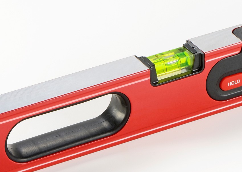 Akutės: • PLUMB SITE® DUAL-VIEW™ – iš viršaus matoma vertikali akutė. • HOLD funkcija užlaiko ir rodo matavimus ekrane. • MODE funkcija rodo matavimus laipsniais, procentais bei aukštį. • MEMORY RECALL funkcija įsimena iki 9 matavimų. • RECALIBRATION – iš naujo sukalibruoja gulsčiuką bei gali nustatyti pasirinktinį nulį. • BUZZER funkcija duoda signalą, kai gulsčiukas pasiekia 0°, 45° arba 90° laipsnių. • Apšviestas ekranas. • Baterijos indikatorius. • Skaitmeninis tikslumas – 0,1 laipsnis. • Stiprus magnetas. • Ekrano parodymai apsiverčia apsukus gulsčiuką. Forma ir konstrukcija: • Stiprus aliumininis profilis. • Frezuotas, itin tikslus paviršius ir pagrindas. • Vandeniui atsparus dėklas. • Patogi guminė rankena. Įrankis naudojamas: • Dailidės darbams. • Statybos darbams. • Stogo dengimo darbams. • Laiptų, šlaitų, rampų matavimų darbams.