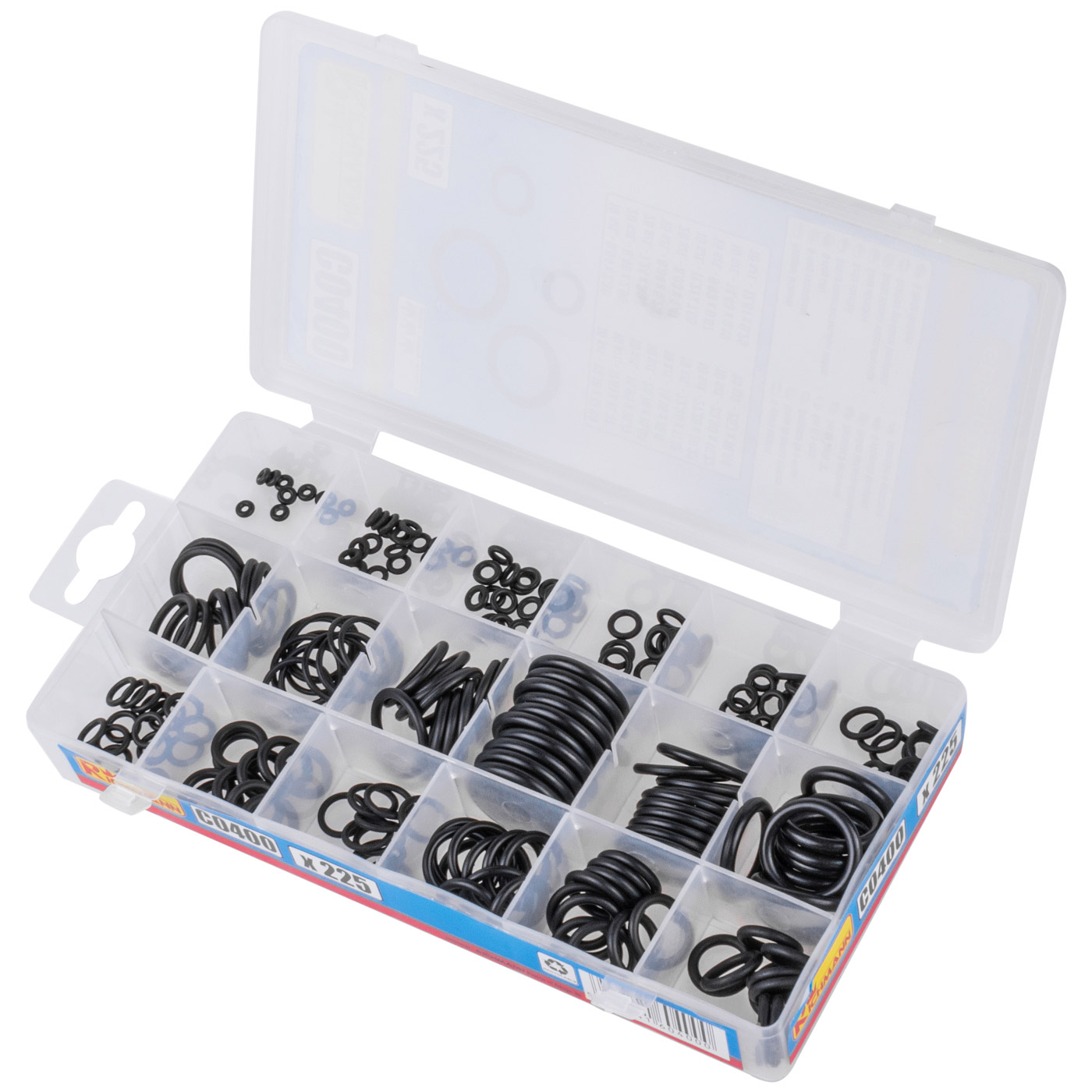 Įvairių dydžių guminių tarpinių komplektas plastikinėje dėžutėje.