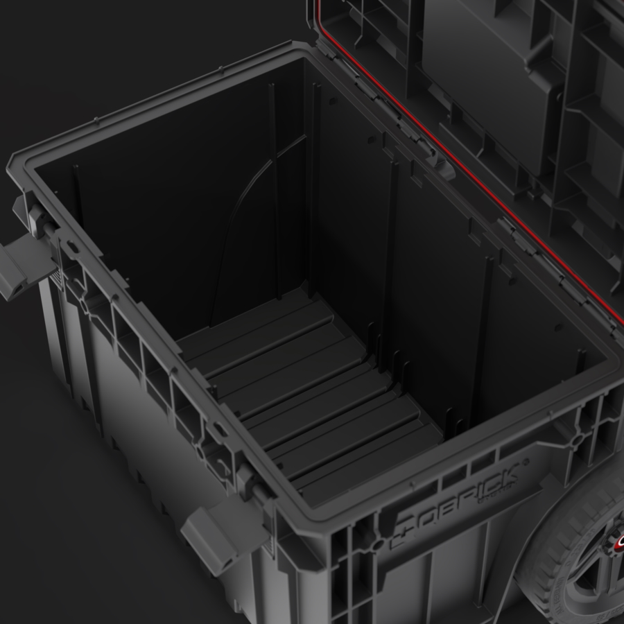 ONE Cart 2.0 – naujas, didžiausias mobilios transportavimo dėžės modelis, kuris yra tvirta bazė kitiems Qbrick sistemos moduliams. Padidinta 100 kg keliamoji galia ir 52 litrų talpa leidžia patogiai transportuoti didelius bei sunkius įrankius.