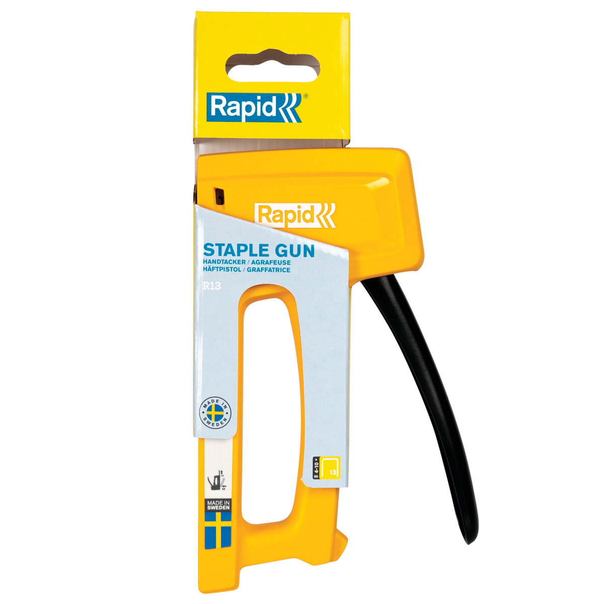 Kabiamušis lengvu ir ergonomišku dizainu, idealiai tinka tiems, kurie turi mažesnes rankas. Puikus pasirinkimas namų vartotojui, kuris reikalauja našumo ir universalumo. Naudojamas baldų apmušalams, plonesnių medžiagų tvirtinimui, audiniams, odai, popieriui. Ergonomiškas R13 pagamintas Švedijoje iš smūgiams atsparaus ABS plastiko, kurio darbinės dalys pagamintos iš aukščiausios kokybės plieno.