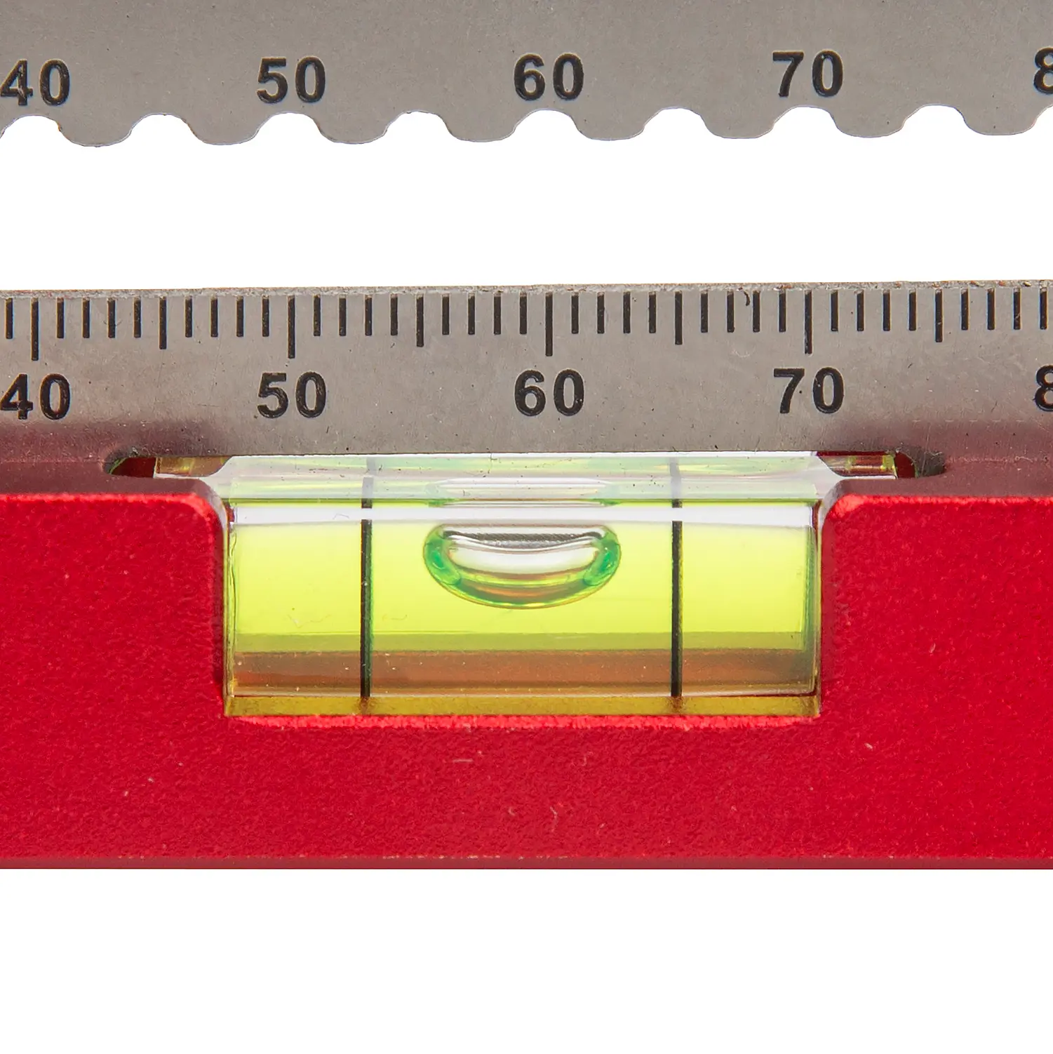 Aukštos kokybės Specialist+ matavimo trikampis, pagamintas iš nerūdijančio plieno korpuso su anoduoto aliuminio briauna ir integruotu gulsčiuku.