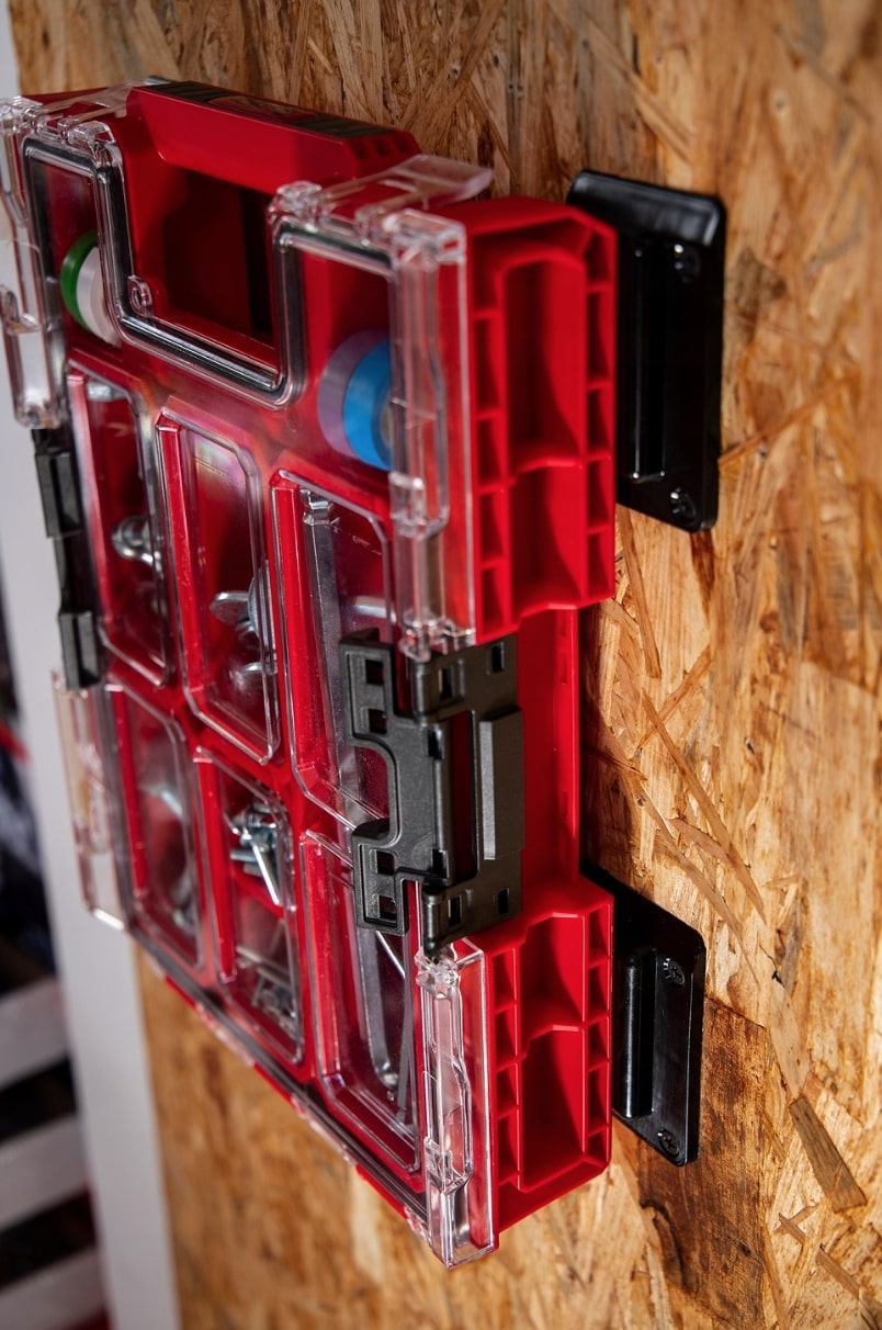 QBRICK SYSTEM ONE smulkmenų dėtuvių jungiamieji adapteriai - tai keturi laikikliai (2 x kairė + 2 x dešinė), leidžiantys vertikaliai prie dirbtuvių ir mikroautobusų sienų pritvirtinti ONE serijos organizatorius, kurių didžiausia keliamoji galia - 8 kg.