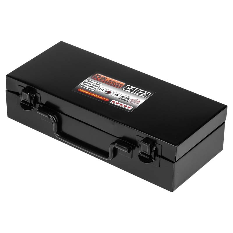 Aštuonių smūginių galvučių rinkinys nuo 24 iki 41 mm. • Pagaminta iš chromo-molibdeno plieno (Cr-Mo). • Komplekte sukimo galvutės: 24, 27, 30, 32, 33, 36, 38, 41. • Metalinė pakuotė.