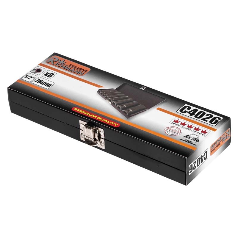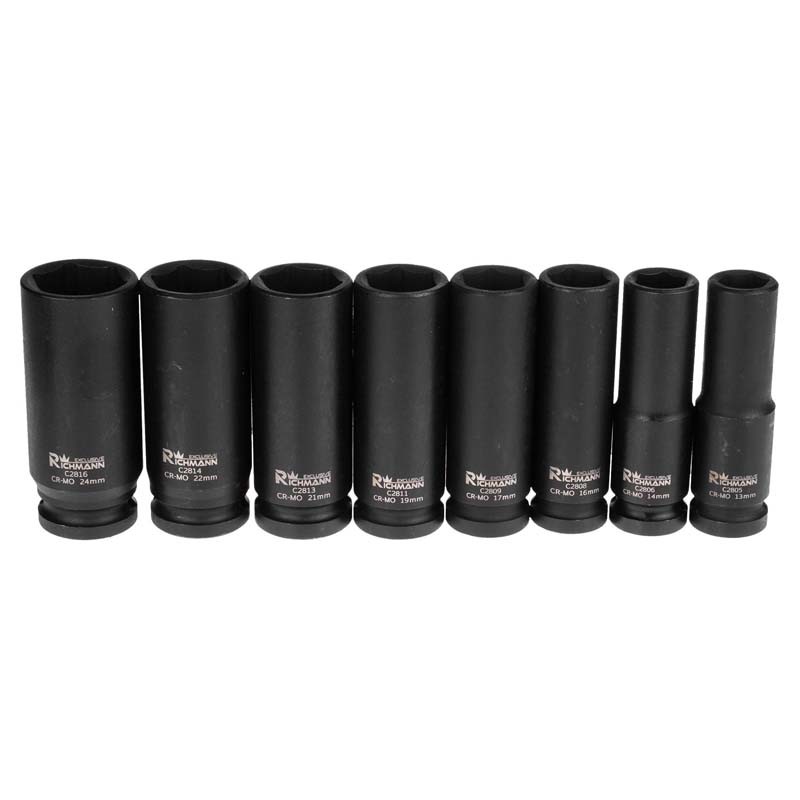 Aštuonių smūginių galvučių rinkinys nuo 13 iki 24 mm.