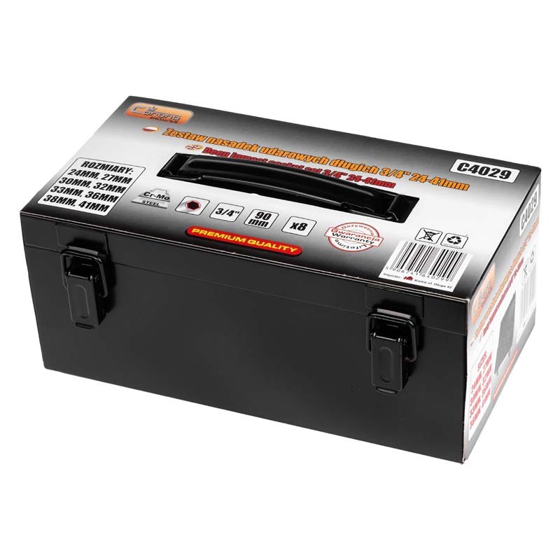 Aštuonių smūginių galvučių rinkinys nuo 24 iki 41 mm.