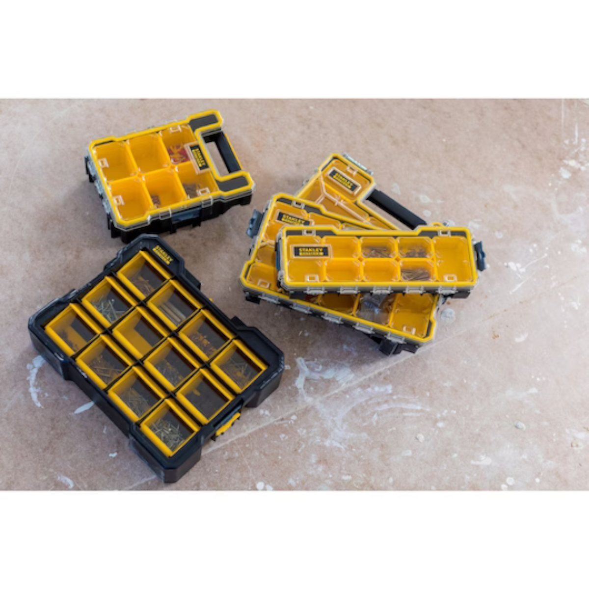• VIENO UŽRAKINIMO MECHANIZMAS: Visos 12 atverčiamų dėžių yra užrakintos į dėklą vienu paspaudimu, todėl jas lengva transportuoti.