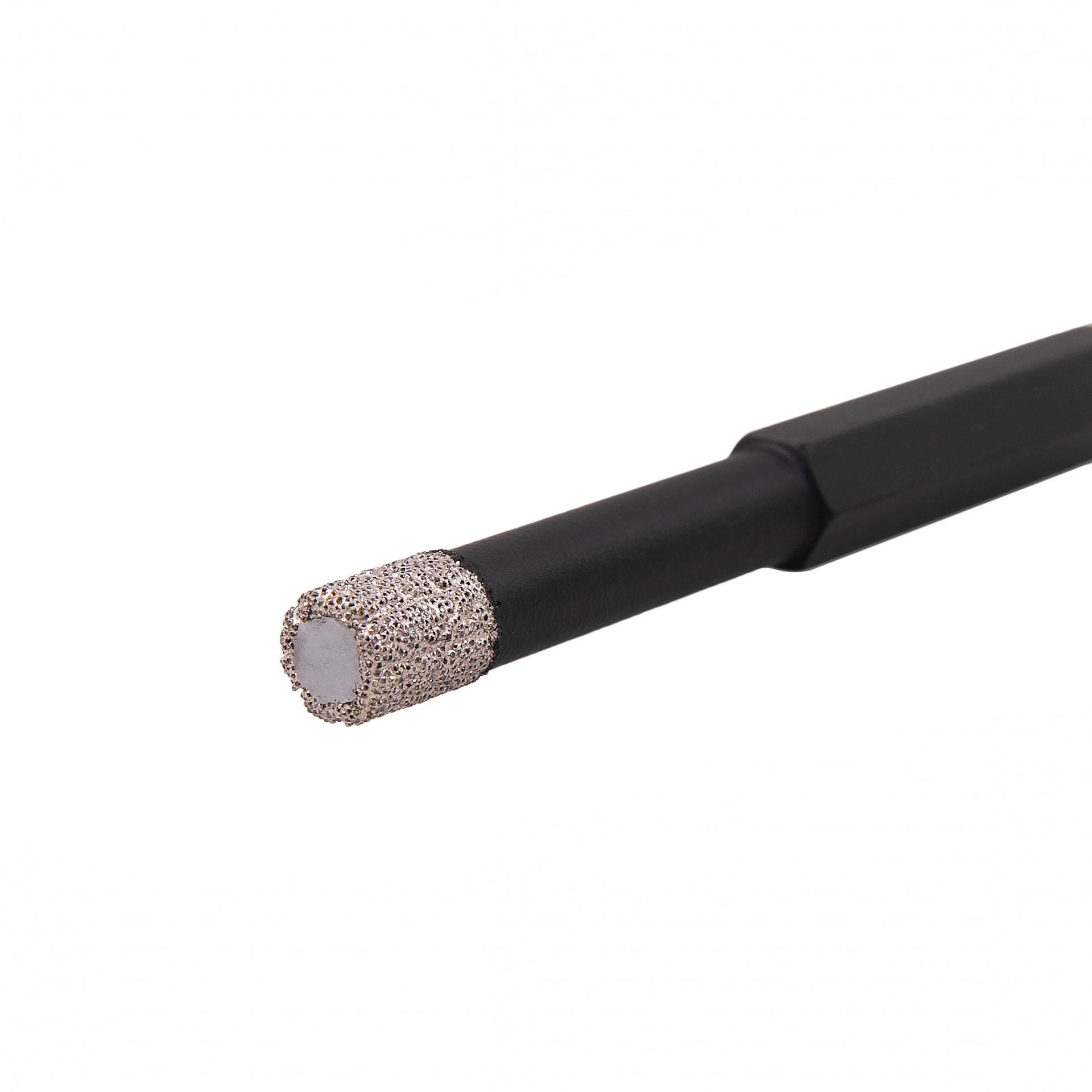 Forma ir konstrukcija: • Vakuuminiu būdu pagamintas grąžtas užtikrina didelį efektyvumą ir ilgaamžiškumą. • Skirtas gręžti itin kietas medžiagas. • Šešiakampis kotas užtikrina tvirtą sukibimą su įrankio griebtuvu. • Viduje esantis vaškas aušina grąžtą. Naudojimas: • Cilindrinis kotelis neskirtas gręžti smūginiu režimu. • Gręžimui nebūtinas vanduo. • Naudojant vandenį galima pailginti grąžto tarnavimo laiką. • Greitesnis gręžimas uždėjus grąžtą ant kampinio šlifuoklio. Itin kietoms medžiagoms gręžti: • Porceliano plytelėms • Marmurui • Granitui • Akmeniui • Plytoms
