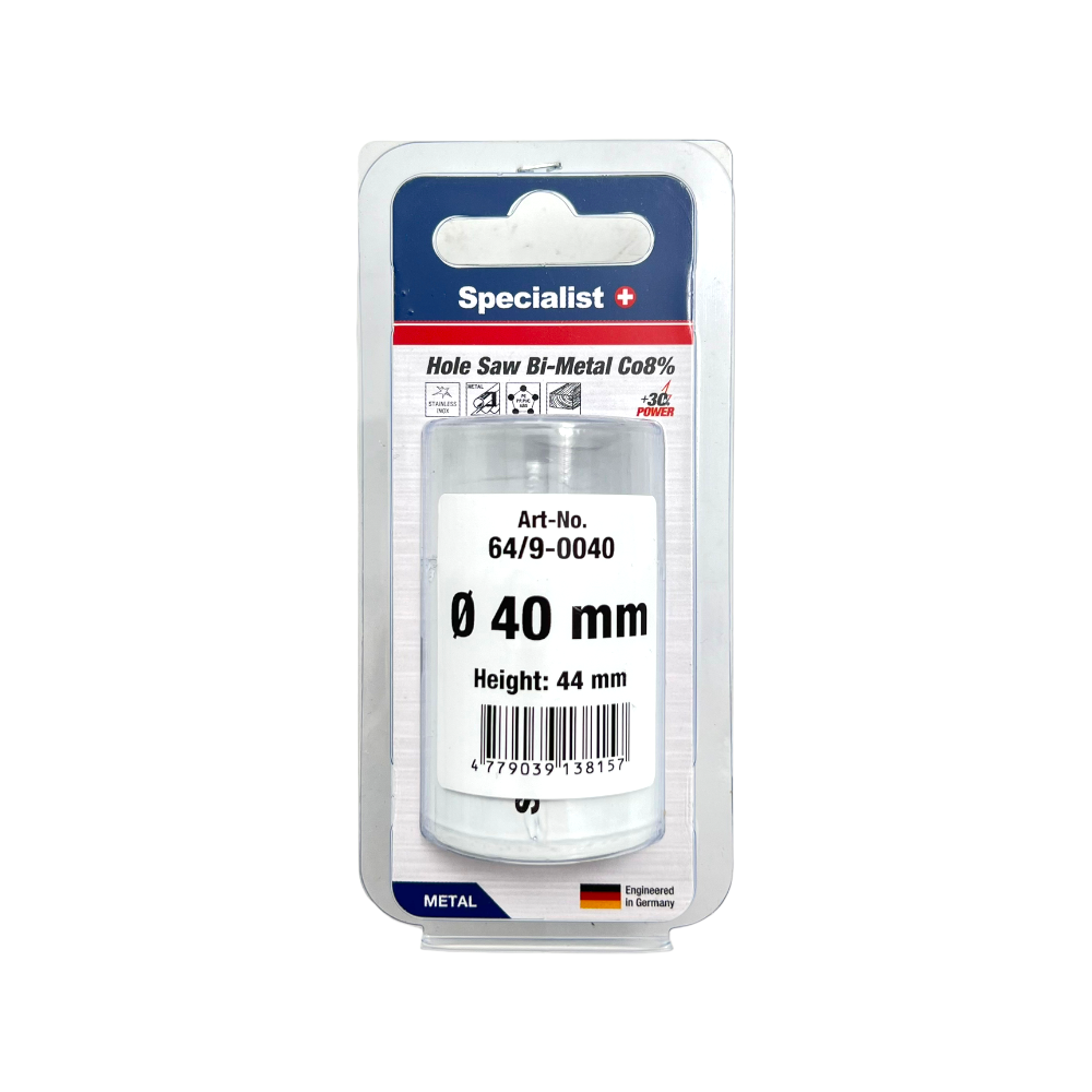 Bi-Metal gręžimo karūnos, pjovimo gylis yra 40 mm, ideliai tinka metalui, plastikui, gipso kartono medžiagoms ir izoliacinėms plokštėms (pvz., gipso kartono plokštėms ir OSB plokštėms). • Puikiai tinka gręžti: juodą metalą, spalvotus metalus, nerūdijantį plieną, minkštą medieną, medieną su vinimis, laminatą, plastiką (PVC, PE, PP, PS, PA), stiklo pluoštu sustiprinta plastikinę plokštę, akrilinį stiklą, izoliacinę plokštę, putplasčio plokštę, gipso kartono plokštę.• Galima gręžti: statybinį plieną, ketų, OSB plokštę, kietmedį, MDF plokštę, terasos medieną, multiplex plokštę, HDF plokštę, parketą.• Suprojektuota ir patobulinta Vokietijoje.