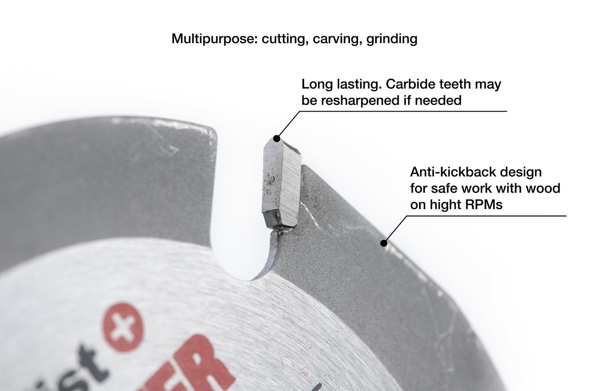 • Dideli kietmetalio dantukai užtikrina efektyvų darbą su įvairia mediena.
