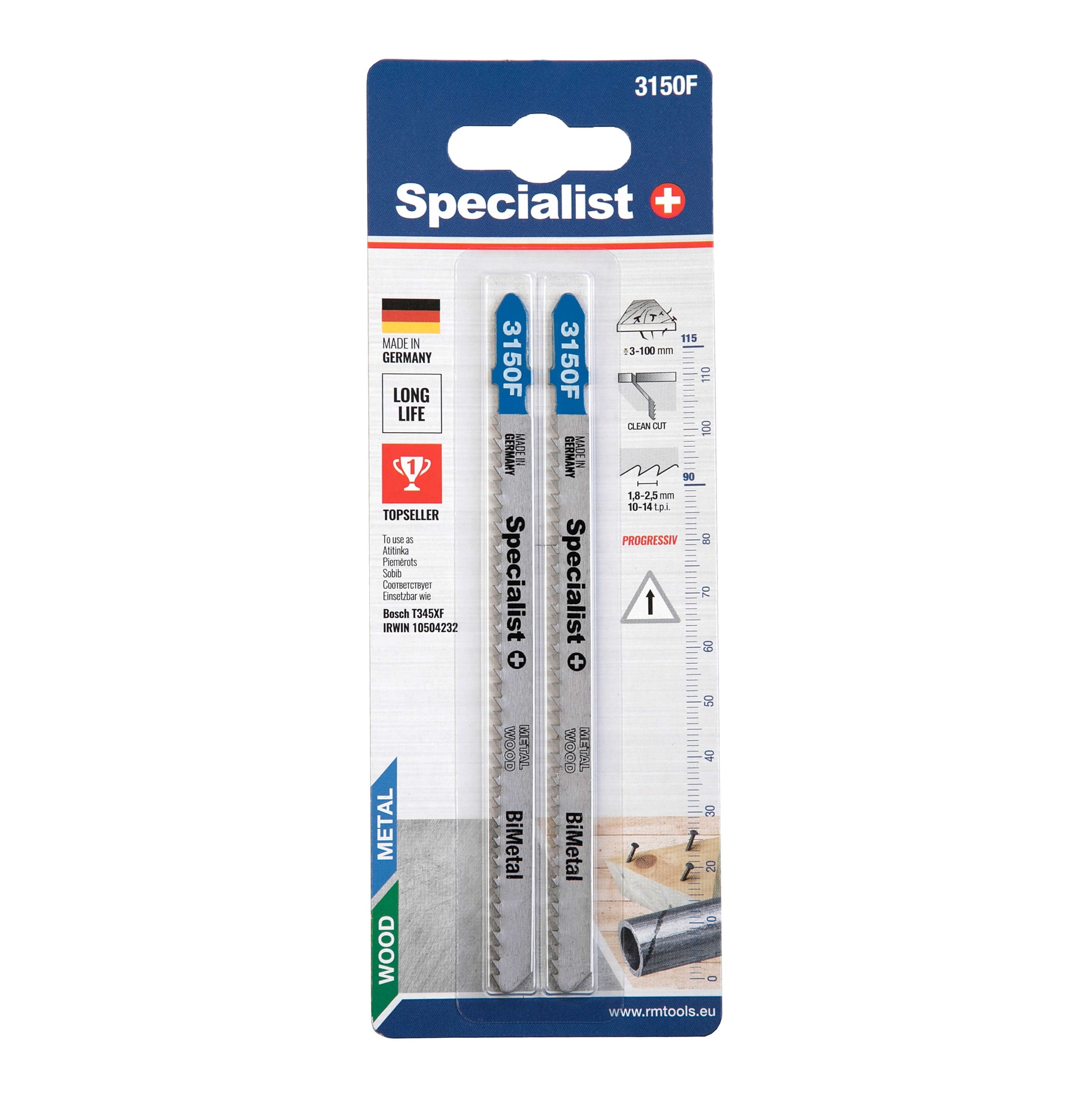 • BIMETAL metalo lydinys su 8 % kobalto – dantukai ypač tvirti.