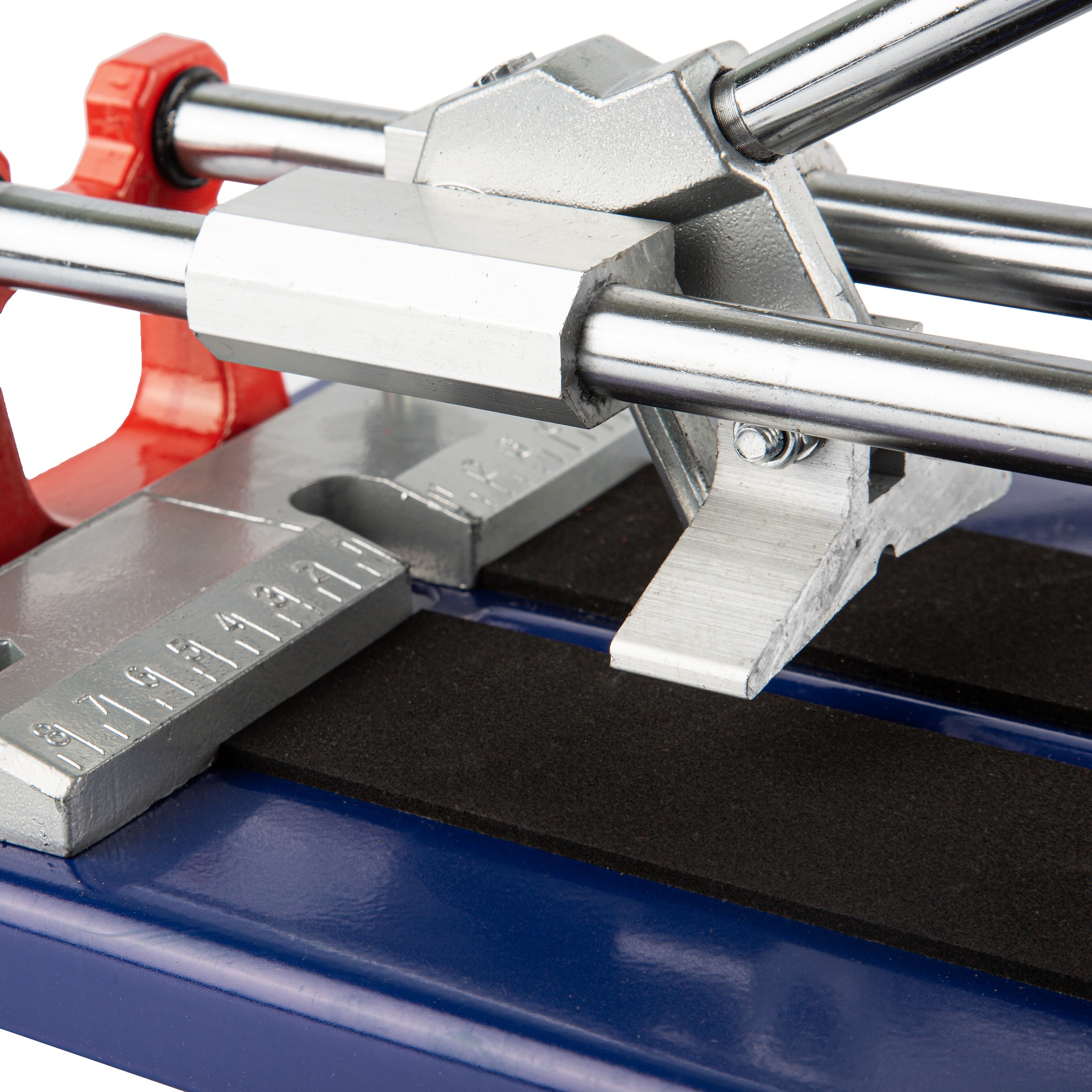 Privalumai: • Neslystantis paviršius – pjaunamos plytelės nejuda. • Guma padengta rankena – patogiau naudoti. • Nerūdijančio plieno bėgiai. Papildoma informacija: • Ratuko dydis 10 x 4 x 3 mm. • Tinka atsarginiai pjovimo ratukai 42-C8229 ir 09/3-001/2R. • Tinka medžiagoms iki 12 mm storio pjauti.