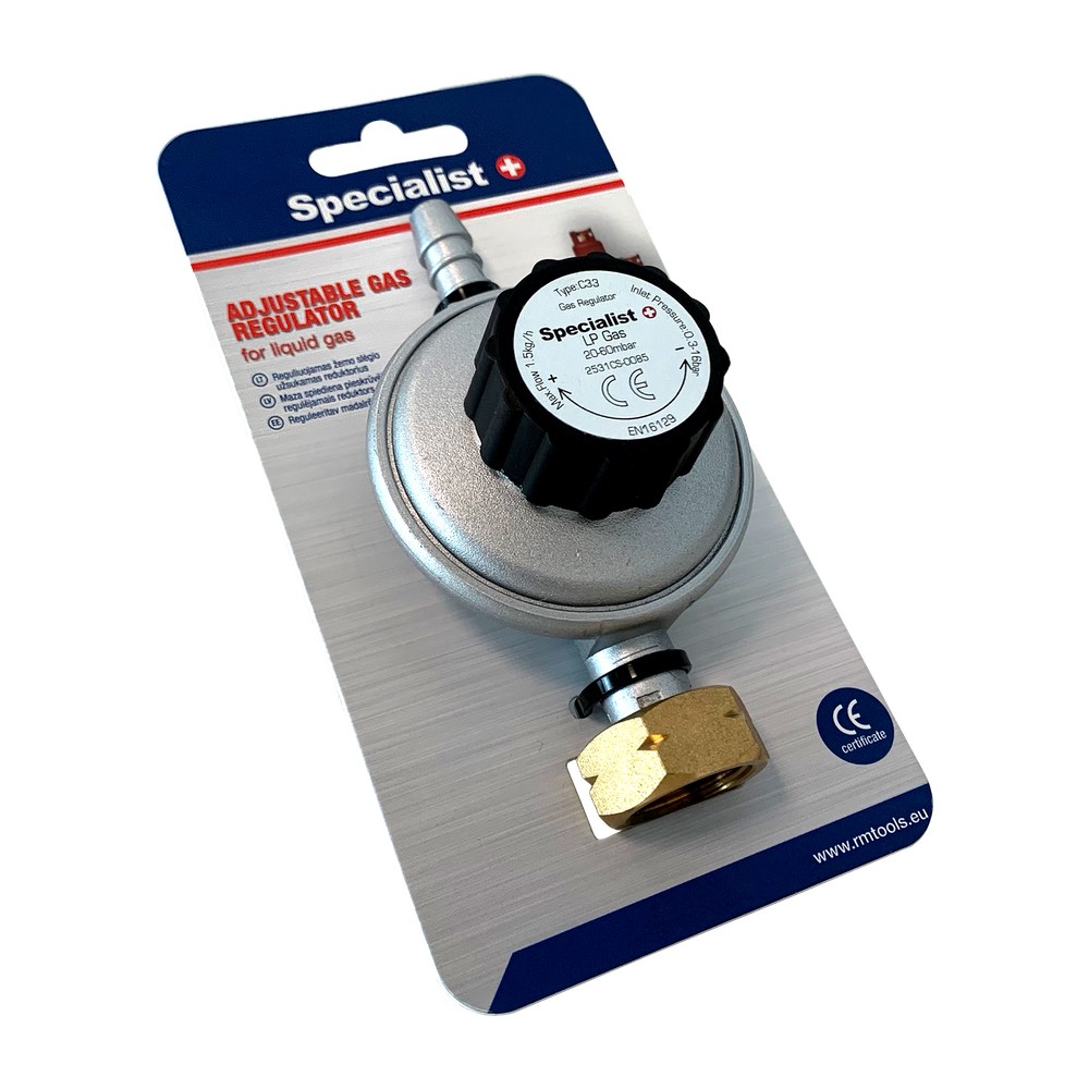Buitinis reguliuojams dujų reduktorius. Dujų pralaidumas 1,5 kg/h, dujų slėgis