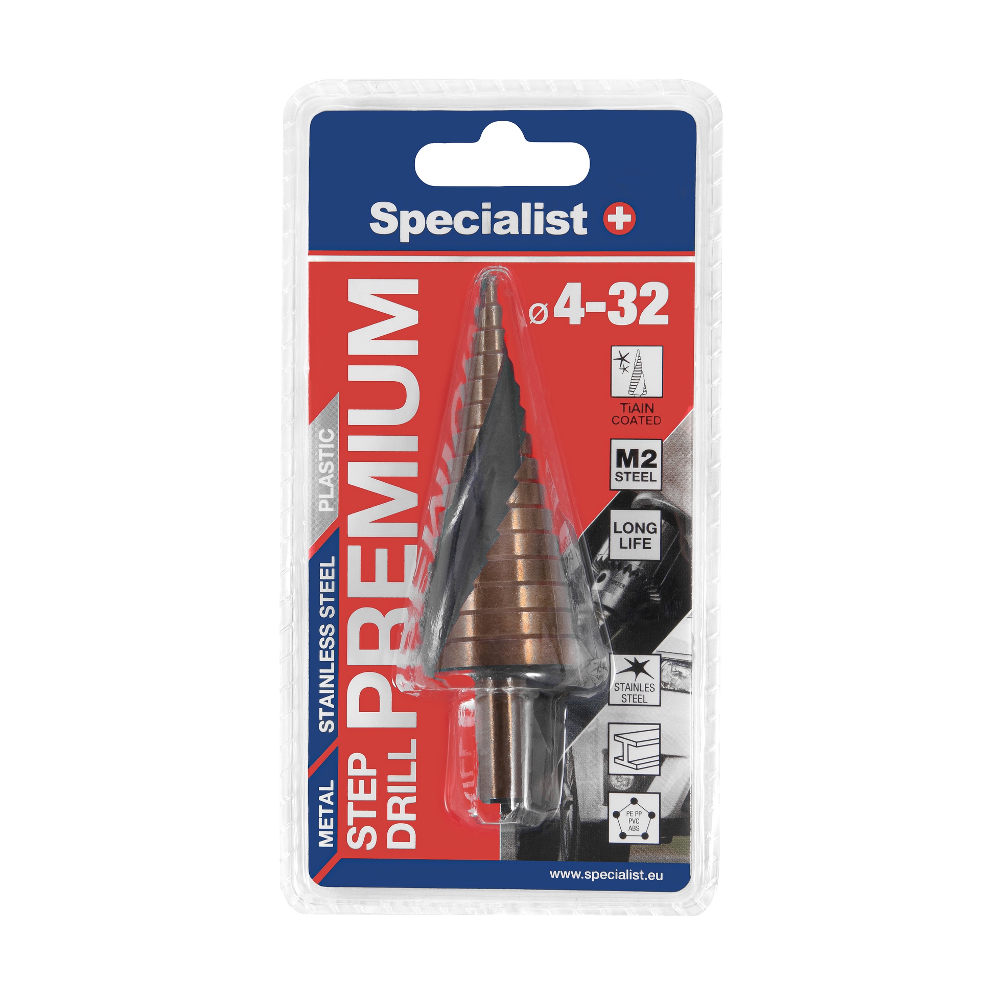 • Žingsninis grąžtas – nuo 4 iki 32 mm.