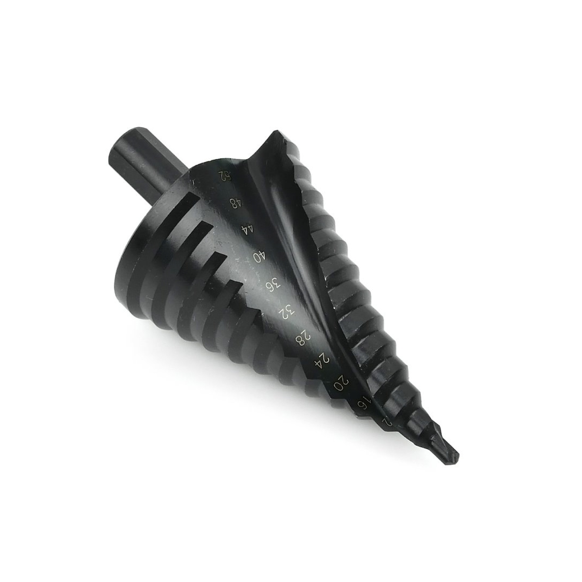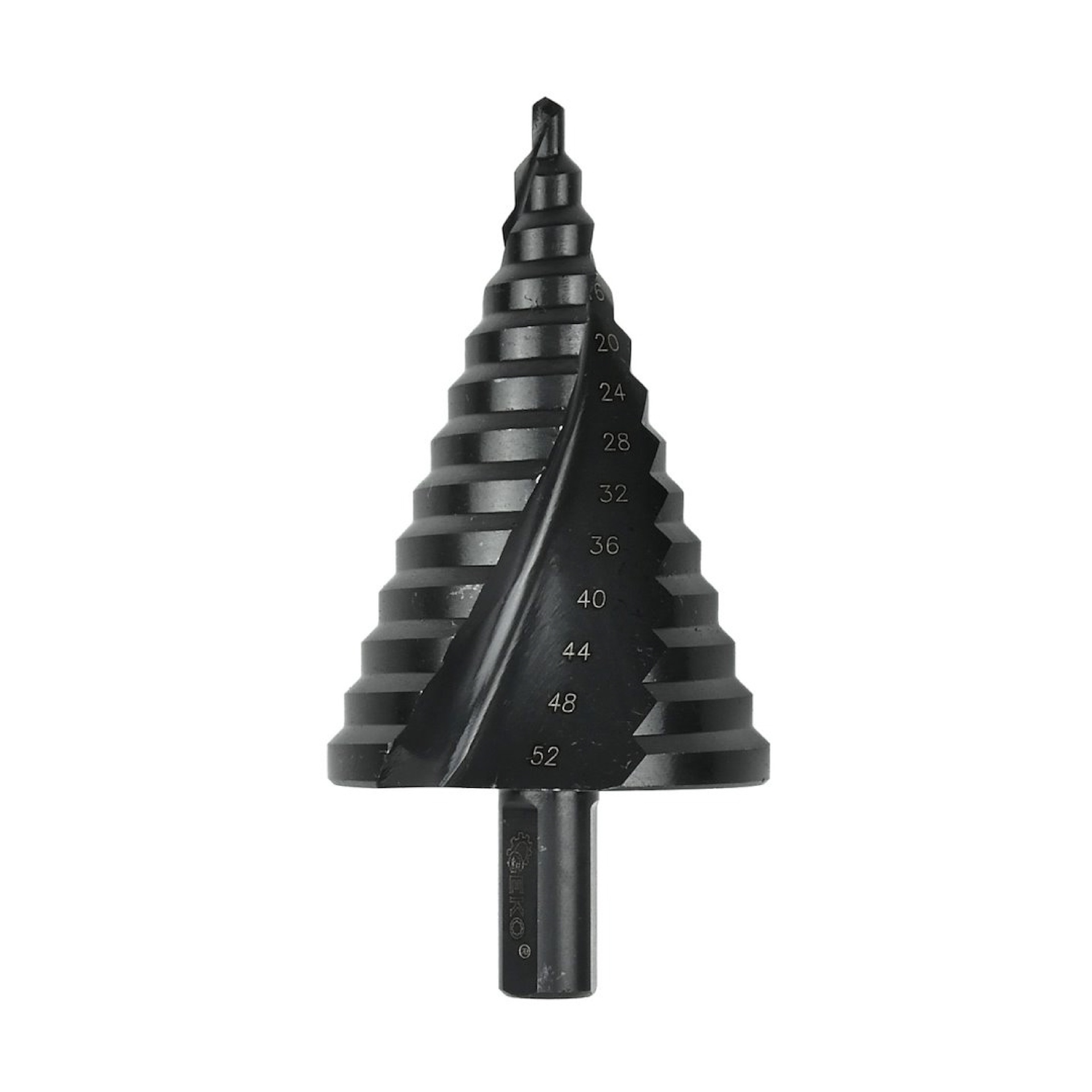 Žingsninis grąžtas, skirtas gręžti spalvotuosius metalus, plienines skardas bei plastikus.